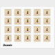 Calcomanía hecha a mano de búho dorado. El búho dorado está parado en una rama de árbol florecida sobre fondo beige. El texto está listo para ser personalizado.