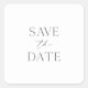 Agrega un toque especial a tu boda con esta elegante calcomanía de "Guardar la fecha" que presenta un diseño minimalista moderno. El fondo blanco y la tipografía refinada crean una apariencia romántica y atemporal. Perfecta para sellar sobres, cajas de favores o mejorar la papelería de tu boda. Una forma hermosa y personalizada de anunciar tu fecha especial con estilo.