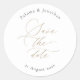 Anuncia tu día especial con estilo con nuestra plantilla de calcomanía para guardar la fecha elegante y minimalista. Esta calcomanía editable es la forma perfecta de compartir la emocionante noticia con tus seres queridos. Con su diseño limpio y contemporáneo y su hermosa letra de caligrafía, emana una elegancia atemporal que cautivará a tus invitados.