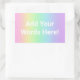 Esta calcomanía presenta un bonito gradiente de arcoíris pastel y tus propias palabras.