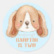 Decora tu fiesta de cumpleaños con tema de cachorro con estas adorables calcomanías de perros que presentan un cachorro lindo con fondo azul. ¡Cambia fácilmente el color de fondo y personaliza el texto con el editor en línea!