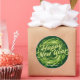Calcomanía redonda clásico nombre año nuevo feliz remolino verde