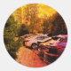 Sella tu historia con luz. Este audaz sticker redondo personalizable presenta una puesta de sol urbana saturada en plena floración cinematográfica: aceras de ámbar quemado, reflejos de automóviles brillantes y árboles dorados contra un cielo de fuego. No es solo un sticker; es una firma de atmósfera, un emblema de calidez y un sello visual de presencia.