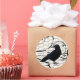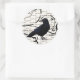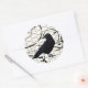 Esta calcomanía redonda grande se muestra con un diseño de impresión de Cuervo de Halloween.