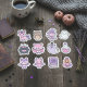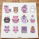Decora tus cosas con esta adorable hoja de ilustraciones de Halloween en rosa y morado. Esta colección destaca a pequeñas criaturas divertidas como un gatito unicornio rosa, un dulce búho marrón y un fantasma blanco que saluda con la mano. También encontrarás un diablo rosa con un sombrero de bruja, un espíritu morado con un ojo que sostiene una pequeña linterna, un zorro rosa con alas de murciélago y murciélagos rosas y morados amistosos. El conjunto se completa con objetos mágicos como un caldero de corazón burbujeante, una botella de poción rosa redonda, un libro de hechizos morado y una pila colorida de calabazas sonrientes. Los colores pastel brillantes y las caras alegres aportan un ambiente completamente suave y juguetón a tus temas favoritos de la temporada espeluznante.
