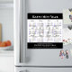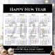 Calendario 2026 Moderna y simple tipografía 'Feliz Año Nuevo' Festividad en tarjeta magnética de negocios negra. Todos los textos están preorganizados para que puedas personalizarlos fácil y rápidamente con tus propios detalles.