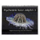 Calendario con diferentes medusas psicodélicas de neón cada mes. Obra digital de James W. Fatherree.