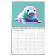Un diseño animal de fantasía diferente de enero a diciembre con un búho, reno, rana, cangrejo, tortuga, liebre, foca de bebé, pulpo, pingüino, flamingo, pez estrella y delfín, todo sobre un fondo de color sólido y no en ese orden.