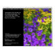 Este calendario de pared de dos páginas presenta catorce imágenes de hermosas y a veces únicas flores de California a Columbia Británica a Italia. Esta colección de fotografías originales fueron tratadas con múltiples filtros de medios naturales para crear estas imágenes de arte fino. Los calendarios de Zazzle se pueden personalizar para cualquier fecha de inicio. (Cuando compras tu calendario en febrero, no pierdes un mes, ¡puede empezar en febrero!)