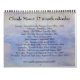 Calendario Claude Monet de 12 meses con algunas de las obras maestras más famosas del artista. Cubierta - Waterlilies, 1906 Enero - Gainstack in the Morning; Snow Effect, 1891 Febrero - Water Lilies, 1906 Marzo - Cliff Walk at Pourville, 1882 Abril - The Blue House at Zaandam, 1871 May - The Luncheon, 1876 Junio Casas en Argenteuil, 1873 Julio - Regatta en Argenteuil, 1872 Agosto - En la orilla del Sena, Bennecourt, 1869 Septiembre - Puente Waterloo; Efecto de la bruma, 1903 Octubre - Vida con manzanas y uvas, 1880 Noviembre - Casas o Parlamento; Tormenta; 1904 diciembre - Boulevard Saint Denis Argenteuil; Efecto de la nieve, 1875 Funda trasera - Puente Waterloo; Efecto de la bruma, 1903