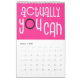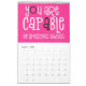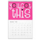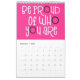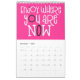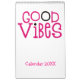 Calendario de buenas vibraciones con un mensaje positivo para cada mes del año en tipografía estrafalaria audaz. Las cubiertas frontal y posterior tienen un fondo blanco con letras funky rosas y negras, y el color de fondo está todo en rosa caliente con tipografía blanca con resaltes rosados y negros calientes. Puede cambiar los colores de fondo si lo desea a través de la opción Click to Personalizar Further.
