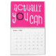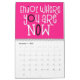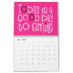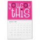 Calendario de buenas vibraciones con un mensaje positivo por cada mes del año en una tipografía divertida de gran tamaño. Las cubiertas frontal y trasera tienen un patrón diagonal de colores arcoiris brillantes que incluyen lila, amarillo, blanco y coral con letras rosadas calientes con un toque de negro, y dentro de fondo rosado caliente con tipografía blanca con resaltes rosados calientes y negros. Puede cambiar los colores de fondo rosado en el interior si lo desea a través de la opción Click to Personalizar Further (Hacer clic en más ).