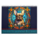 Doce meses de magníficos ilustraciones de bulldog francés de cristal pintado de color vintage para que el amante de la Francia dure todo el año. Hermosos ilustraciones de estilo Art Deco Nouveau gustarán a los amantes del perro y a los padres de peletería. Magníficos ilustraciones por cada mes del año. Un gran regalo para los dueños de mascotas lindos.