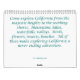 Come explora California de las alturas majestuosas a las orillas que calman. Montaña, lagos, cascadas, valles. Pájaros, flores, insectos, playas. Todos los éstos hacen California de exploración una aventura interminable. Este calendario incluye las fotos del parque nacional de secoya, Piedras Blancas, puesto de observación máximo de la mula en el bosque del Estado de la secoya, las caídas de Tokopah, el lago Tahoe y más.