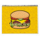 Ilustracion personalizado Cheeseburger. Iconos de contorno de comida basura fondo de patrón amarillo. Texto personalizado.