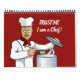 Cabeza del chef con gorra, pañuelo rojo y texto personalizado.