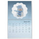 Este calendario muestra un adorable muñeco de nieve en cada página con un paisaje detrás de la cuadrícula del calendario.