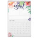 Este calendario femenino de acuarela presenta un calendario mensual de 12 páginas (o 24 si selecciona esa opción) que puede personalizar el texto y también el estilo de la cuadrícula del calendario debajo, también incluye una sección para organizar tareas o objetivos para el mes, un área de nota y también un área designada para una cita que le inspire durante el mes. Cada página incluye una hermosa pieza con letras con el mes y flores acuáticas y vegetación. Puede personalizar la portada con el año y el texto de su personalizado, así como la parte posterior, para que este hermoso calendario 2019 sea el suyo.