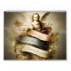 Un calendario de la pared del 2026 con cintas, flores, cantos, ángeles alados. Recordatorio de artistas barrocos y renacentistas