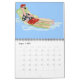 Cuadros acuáticos originales de Anne Ormsby de flamencos personalizados que disfrutan de la vida jugando al golf y yendo a la playa adornan cada mes este calendario divertido.