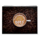 Comienza 2025 con este hermoso calendario de cotización de café. Cada mes contiene café estético o una foto de café con un divertido hecho único sobre el café.