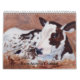 Un calendario que ofrece pinturas de los animales del campo, tales como vacas, pollos, burro, caballos, y más del artista Brenda Thour.