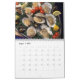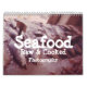 Esto es un calendario que ofrece las fotografías de los mariscos crudos y cocinados.