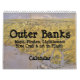 Esto es un calendario que ofrece diversos temas y elementos del área de Outer Banks. En el calendario hay las fotografías, los mapas y las ilustraciones que ilustran la esencia de los bancos externos.