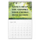 Este maravilloso calendario muestra una colección de algunas citas inspiradoras destacables sobre varias imágenes de fondo que están destinadas a animar y motivar tu alma a diario en esta asombrosa colección de citas inspiradoras. Este calendario de pared es un calendario de 12 meses de enero a diciembre e incluye un ocular para una pared fácil colgando con bloques diarios gobernados para la organización diaria y enlace de espiral blanca.