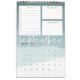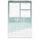 El calendario mensual único de 12 páginas incluye una cuadrícula de calendario bajo tres secciones de personalizable para ayudarle a organizar su mes, incluida una lista de tareas pendientes alineadas con casillas de verificación, una sección para "grandes objetivos" y una sección de mantenimiento de notas. Cada página presenta un fondo de gradiente de acuarela en tonos suaves de verde jade, con el mes escrito a mano en blanco. Personalice la portada con el año y el texto de su personalizado para hacer de este hermoso calendario 2019 su propio.