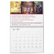 El diseño presenta las Solemnidades y Días de Festín para cada mes junto con su mensaje personal a continuación. El mensaje puede ser una oración, recordatorios de cumpleaños, etc. También aparecen imágenes relacionadas con el día/día que se celebra ese mes. El texto también distingue entre las Solemnidades y los Días de Fiesta de la Iglesia Católica e incluye fechas. Se ofrece una descripción para aquellas festividades que no caen en la misma fecha cada año (es decir, Pascua, Pentecostés...) Back of Calander presenta una explicación de los colores de la vestimenta a lo largo del año más, fechas de los Memorials.