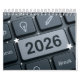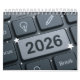 Convierte tu año en un espacio de ideas, enfoque y diseño. Esta exclusiva portada cuenta con una vista de arriba hacia abajo de un escritorio moderno con una distribución central de teclado, donde el año 2026 reemplaza la tecla "Enter", simbolizando un paso audaz hacia un nuevo capítulo. Cada tecla alrededor está decorada con iconos minimalistas — ☕ ✍️ 🔍 — representando creatividad, descanso, enfoque y curiosidad. La paleta de colores está limpia y es elegante, combinando tonos blancos, grises y suaves para evocar la claridad y el estilo moderno. Esta portada marca el tono de un calendario que no es sólo sobre fechas -se trata de intención, inspiración e impulso diario.