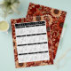 Planee su año con calor dorado y belleza práctica. Este calendario estilo volante de 2025 presenta los doce meses en un diseño limpio de rejilla, cada uno enmarcado por ricos florales de otoño en tonos naranjas, rojos y beige. El texto blanco negrita en un encabezado negro agrega contraste, mientras que los domingos y las vacaciones están marcados en rojo para una referencia fácil. Perfecto para centros de cuidados, paredes de oficinas o acogedores espacios domésticos, este calendario combina el encanto estacional con la claridad del día a día".