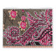 El diseño presenta un diseño de tela muy complejo. Aquí hay una descripción detallada: ・ Diseño central: La parte principal de la tela muestra grandes flores estilizadas y formas paisley en tonos rosa, blanco y negro. Estos motivos están empañados con un fondo marrón que tiene un aspecto de cuero en textura y crujido. ・ Sección superior: Por encima del diseño central, hay un patrón más pequeño y simétrico con colores y elementos similares. Esta sección incluye patrones florales adicionales que son más geométricos y estilizados, junto con un área de rosa sólido que se puede usar para personalización o texto. ・ Borde: El borde inferior consta de tres bandas distintas: o Un patrón de zigzag estrecho en blanco y negro. o Una banda más ancha con formas geométricas alternadas en naranja, negro, blanco y rosa. o Otra banda estrecha con un simple motivo repetitivo en negro y rojo sobre un fondo blanco. Este diseño es bastante complejo y podría ser utilizado para varios fines, como ropa, tapicería o incluso diseño gráfico.
