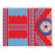 El diseño presenta un hermoso diseño simétrico fractal. Está decorado con motivos de encaje intrincados y con un esquema de colores rojo, azul y blanco. La simetría y complejidad del diseño lo hacen visualmente llamativo e interesante, a menudo asociado con la belleza matemática y la expresión artística.