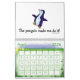 Calendario divertido del pingüino. Cada página tiene una diversos imagen/dibujo animado de pingüinos con refranes divertidos. Garantizado para poner una sonrisa en su cara y para hacer que usted ríe cada mes del año. El texto puede ser cambiado/ser modificado para requisitos particulares. Van tan a continuación los amantes del pingüino, personalizan un calendario de que usted goce durante todo el año.