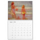 Este calendario de playa se basa en la arena y las olas. Las imágenes se refieren a niños jugando en la orilla del mar, con castillos de arena, conchas y sol. Los niños de la orilla saltan en las olas, recorren la orilla de arena y disfrutan del sol.