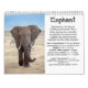 Un calendario fotográfico para cualquier año que muestre hermosas imágenes de elefantes de Asia y África. No te olvides de elegir tu año preferido en la barra lateral. Este calendario de personalizable completo es un regalo memorable para la gente que ama a los elefantes y la vida salvaje. La cubierta trasera incluye un párrafo corto sobre elefantes.