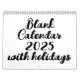 Calendario en blanco 2025 con vacaciones y texto cambiable