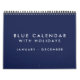 Son 12 meses (de enero a diciembre) blanco azul calendario con vacaciones (eventos y feriados de Estados Unidos), alambre azul y texto de personalizable en la portada.