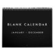 Son 12 meses (enero - diciembre) de calendario en blanco negro con vacaciones (eventos y feriados de Estados Unidos) y texto de personalizable en la portada.