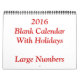 En el calendario en blanco de 2016 con días festivos con números grandes y alambre rojo se puede encontrar texto de personalizable rojo en la portada y festividades y eventos en Estados Unidos y Canadá.