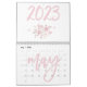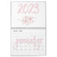 Calendario mural moderno 2023 con hermosos ilustraciones de rosas y texto de escritura rosa escrito dentro del calendario.