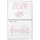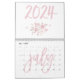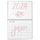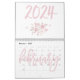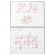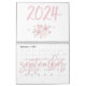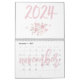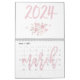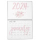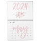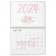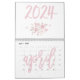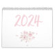 Calendario mural moderno 2024 con hermosos ilustraciones de rosas y texto de escritura rosa escrito dentro del calendario.