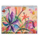 Gozo el dibujar de las flores imaginadas coloridas. Todos los dibujos en este calendario son arte original creado en acuarela y tinta en el papel. Los dibujos y el paisaje de la flor son una salida para mí como en el pasado he estado interesado generalmente en la abstracción. Este calendario da una flor preciosa para cada mes y espero que los diseños sean alegres y amistosos. Elegí un color para cada mes que sería un complemento a las flores dibujadas.
