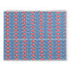 La composición presenta una fascinante interacción de dos elementos principales: 1. Motivos florales rojos: o Estos motivos están dispuestos en columnas verticales. o Cada motivo ostenta ocho pétalos estilizados, formando una forma de rosetón. o El color rojo de estos motivos destaca sobre el fondo blanco, creando un sorprendente contraste. 2. Patrón de ondas azules y blancas: o Este intrincado patrón llena los espacios entre las columnas florales rojas. o Consiste en bucles interconectados continuos, que recuerdan a olas o escalas. o El color azul consistente añade profundidad y complementa el diseño general. La combinación de estos elementos da lugar a un ritmo y textura visualmente atractivos. El cuidadoso equilibrio logrado a través de la simetría y los colores contrastantes hace que este diseño sea cautivador.