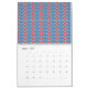 Calendario fondo azul con diseños en rojo y blanco