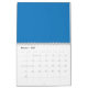 Calendario fondo azul con reloj en blanco y negro