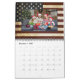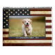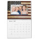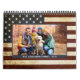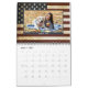 Calendario de 12 meses de la bandera estadounidense de EE. UU. - diseño de la bandera estadounidense azul blanco vintage, estrellas y rayas. Personaliza cada mes con tus fotos favoritas, tu nombre de familia y tu texto. Este calendario patriótico es perfecto para familias militares, veteranos, negocios patrióticos. DERECHOS RESERVADOS © 2021 Judy Burrows, Black Dog Art - Todos los derechos reservados. Calendario de fotos de la familia patriótica de la bandera norteamericana de época