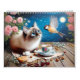 Este calendario de 12 meses cuenta con 14 ilustraciones únicos de una variedad de gatos, todos en una variedad de ambientes.